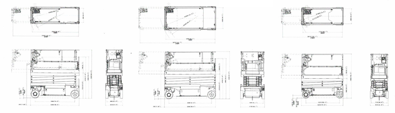 工作平臺(tái)可水平延伸,NS/NL機(jī)型延伸900mm,WL機(jī)型延伸可達(dá)1270mm。除NS機(jī)型外其它機(jī)型護(hù)欄均可折疊。![]() |